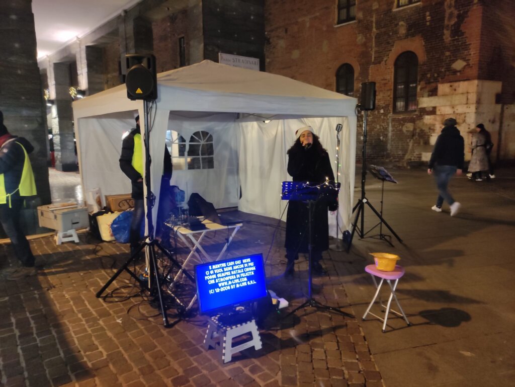 E poi ancora, mercatino degli hobbysti in via S.Tomaso, mentre sotto i portici di palazzo Cittanova campeggia la Natività che la ditta Me.com ha realizzato su disegno di Giuseppe Castellani creato a suo tempo per le vetrate della chiesa della Beata Vergine di Caravaggio.
