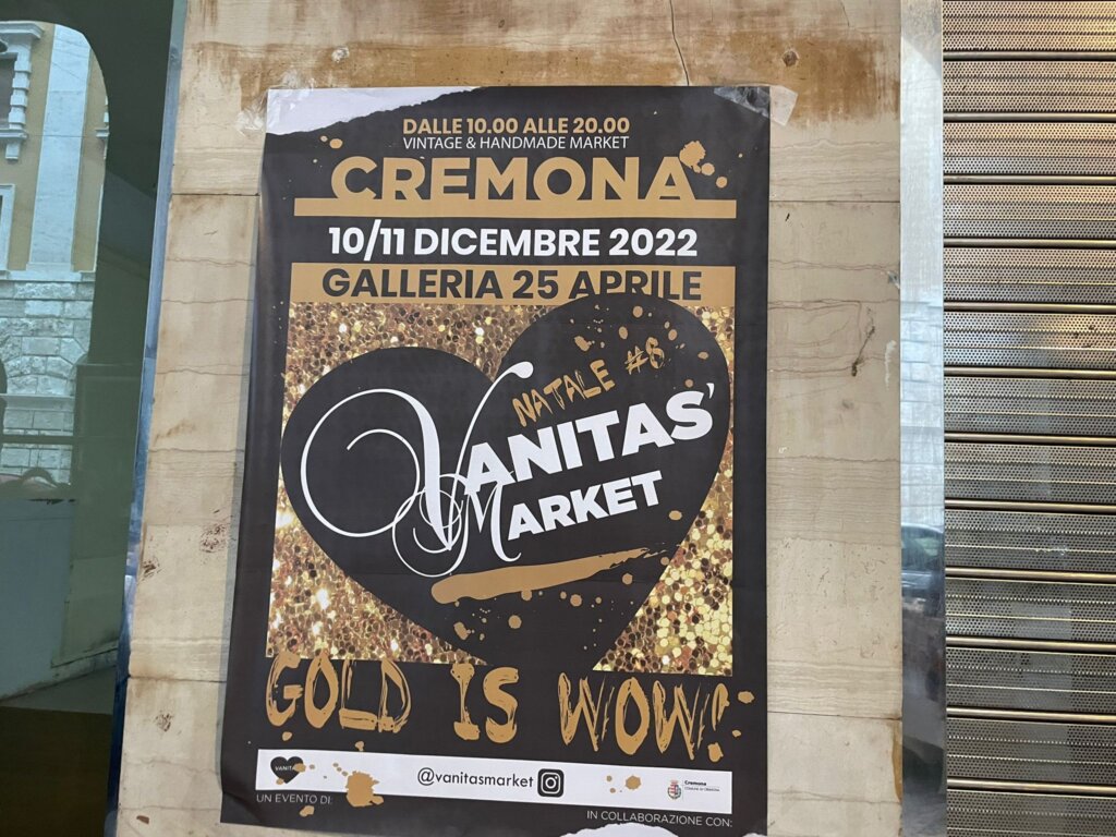 Vanitas’ Market Edizione Natale #8 torna a Cremona in Galleria 25 aprile: fino a domenica 11 dicembre (con orari dalle 10 alle 19) più di 40 espositori di vintage, handmade e marchi emergenti presenti per lo shopping natalizio nella storica location che ha visto nascere l’evento 12 anni fa. L’attenzione è su una modalità di acquisto più consapevole, legata alla qualità più che alla quantità, all’unicità più che all’omologazione. Il tutto accompagnato da un occhio di riguardo per l’ambiente e per il riciclo che da sempre gli espositori targati Vanitas promuovono con passione. Il tema “oro” , “gold”, di tutte le otto edizioni di Vanitas’ Market vuole essere una forma di ispirazione per gli allestimenti e i prodotti degli espositori.
