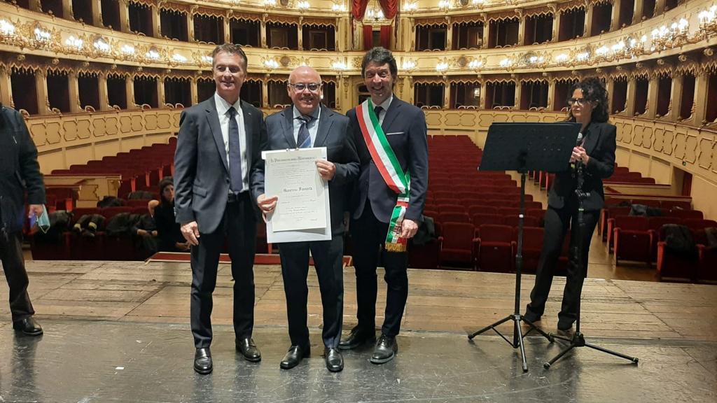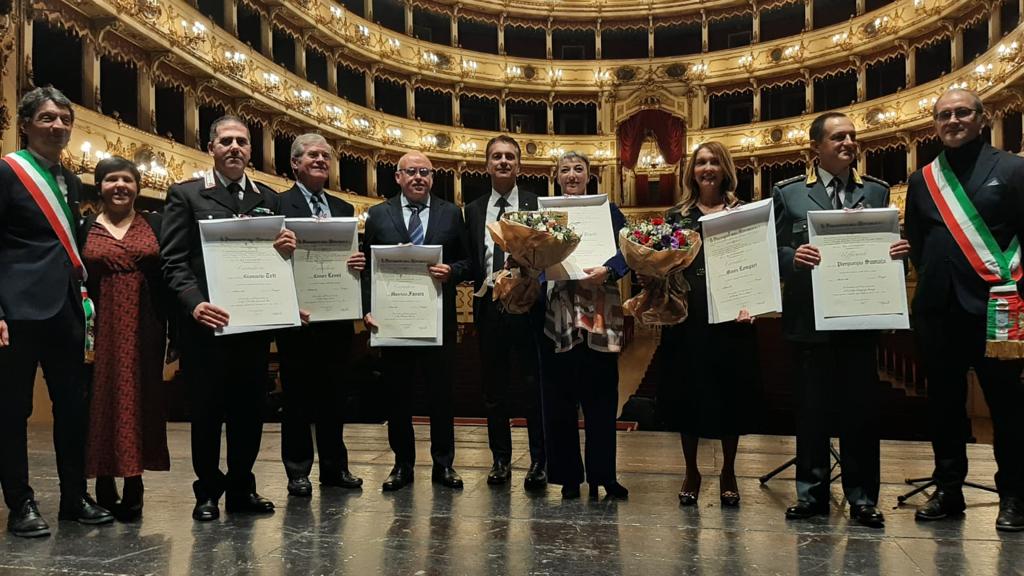Il palco del Teatro Ponchielli di Cremona ha ospitato il brindisi di auguri promosso dal prefetto Corrado Conforto Galli con la consegna delle onorificenze dell’Ordine al merito della Repubblica Italiana. I riconoscimenti, consegnati dallo stesso rappresentante del governo, insieme al sindaco di Cremona Gianluca Galimberti ed al vicesindaco di Castelleone Federico Marchesi, sono andati a Piergiorgio Samaja, Maurizio Favara, Cesare Leoni, Maura Longari, il Luogotenente dei Carabinieri Giancarlo Teti e Paola Tigoli.