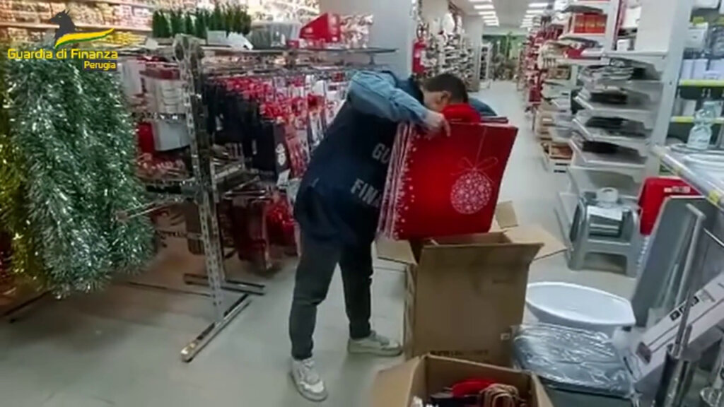 La Guardia di Finanza di Perugia ha sottoposto a sequestro circa 12.000 pezzi, tra giocattoli, addobbi, decorazioni e altri articoli natalizi, venduti al pubblico privi dei requisiti previsti e, quindi, non sicuri e potenzialmente pericolosi per la salute.