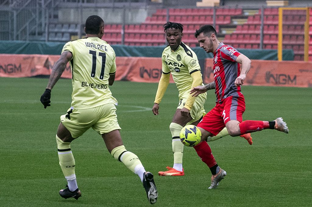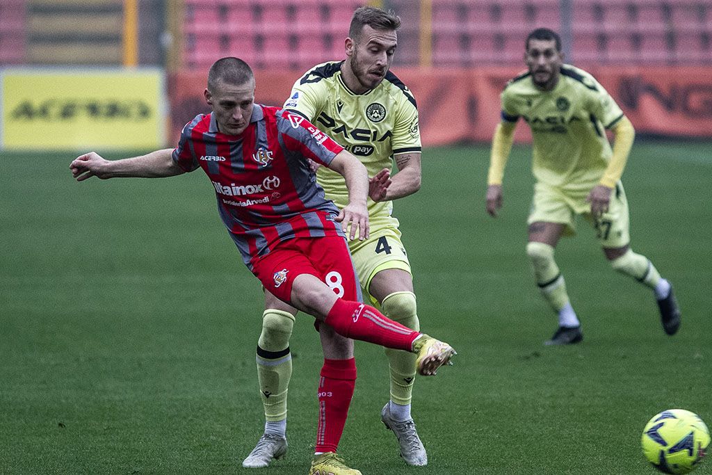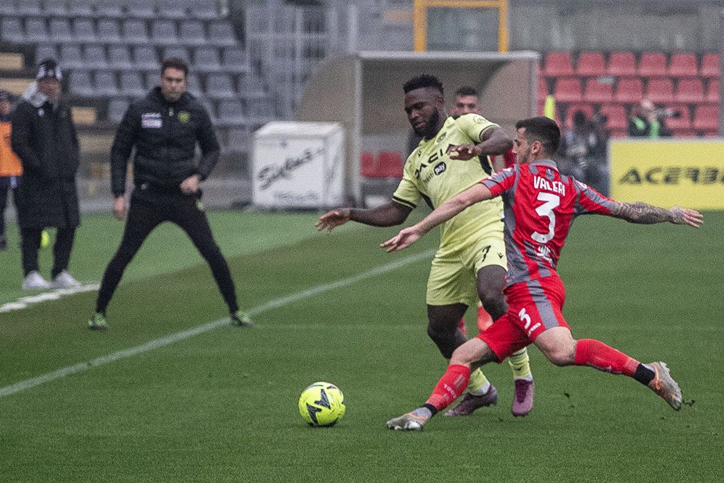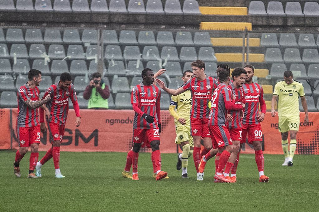 Contro l’Udinese Alvini presenta ancora il modulo 4-3-1-2 già visto nelle precedenti amichevoli, con la sorpresa Tsadjout schierato nel ruolo di trequartista alle spalle di Dessers e Felix Afena-Gyan. Ottimo l’avvio dei grigiorossi che, motivati e determinati, pressano alto nei primi minuti, e creano alcune interessanti situazioni di gioco.