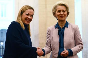 (Adnkronos) – La presidente della Commissione europea, Ursula Von der Leyen, è appena arrivata a Palazzo Chigi dove è stata ricevuta dal premier Giorgia Meloni. Tra le due un affettuoso saluto, prima della stretta di mano a favore dei fotografi.