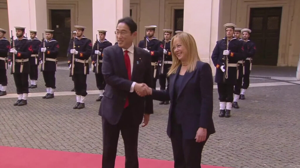 Il presidente del Consiglio Giorgia Meloni accoglie a Palazzo Chigi il primo ministro del Giappone Fumio Kishida.