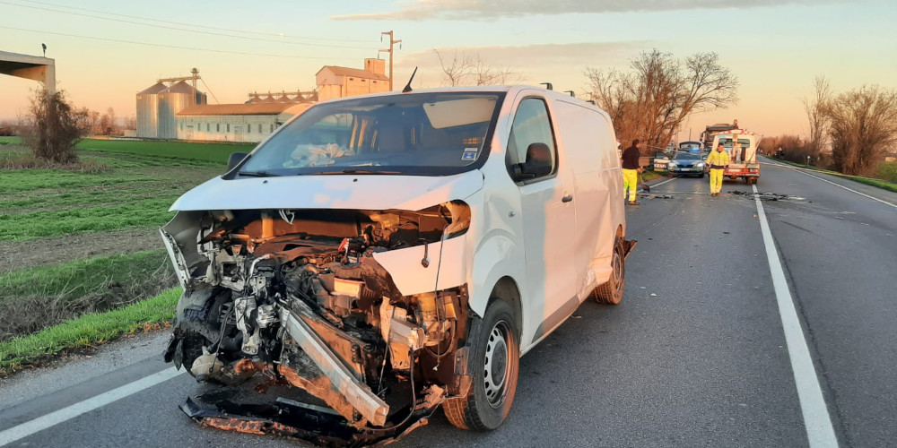 Scontro auto - furgone all'incrocio