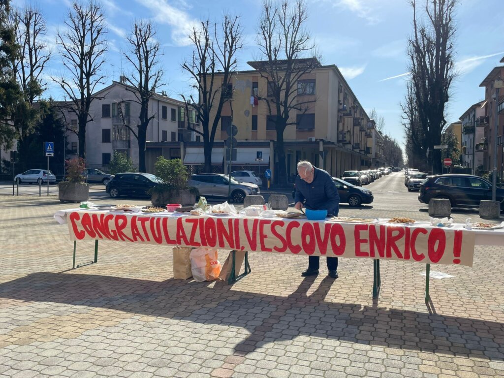 Festa a sorpresa questa mattina dopo la messa delle 11 nella parrocchia di Cristo Re. “Congratulazioni vescovo Enrico”, recitava lo striscione appeso su un banchetto allestito nel piazzale della chiesa, per festeggiare l’elezione a vescovo di Trieste del parroco don Enrico Trevisi. Una volta terminata la celebrazione, don Enrico è uscito commosso e ha salutato tutti i presenti. Tante le lacrime dei cremonesi e anche da parte del futuro vescovo. Chiesa piena come e più del solito, per la messa delle 11 e alla fine della celebrazione tanti gli appalusi per il sacerdote che ha guidato una delle più numerose comunità parrocchiali cittadine dal settembre 2016, dopo essere stato per 12 anni Rettore del Seminario vescovile. f.band