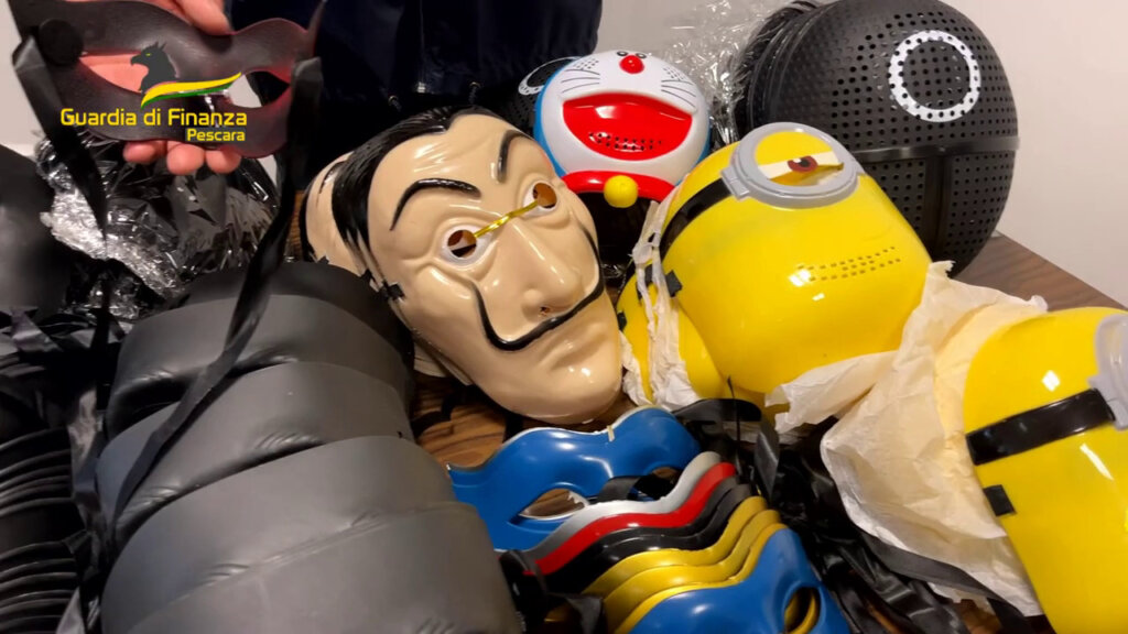 Oltre 400 mila maschere e accessori di carnevale contraffatti made in China sono stati sequestrati dalle Fiamme Gialle di Pescara. L’azione ha interessato esercizi commerciali gestiti da una rete di imprenditori cinesi, con precedenti per contraffazione, sanzionati e segnalati per violazione al codice del consumo.