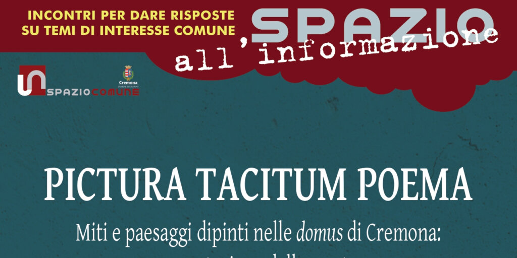 La mostra Pictura tacitum poema -Miti e paesaggi dipinti nelle domus di Cremona, allestita negli spazi del Padiglione Andrea Amati del Museo del Violino, inaugurata il 10 febbraio scorso ed aperta sino al 21 maggio prossimo, sarà al centro dell’incontro pubblico che si terrà mercoledì 22 febbraio, nella Sala Eventi di SpazioComune (piazza Stradivari, 7) nell’ambito degli appuntamenti di Spazio all’Informazione. Relatrice sarà Marina Volonté, Conservatrice del Museo Archeologico di Cremona, che, insieme a Nicoletta Cecchini ed Elena Mariani, ha curato la mostra.