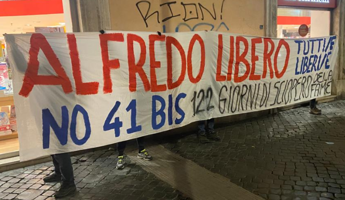 (Adnkronos) – Tre presidi contemporanei in tre diverse piazze di Roma sono in corso in solidarietà con Alfredo Cospito da 122 giorni in sciopero della fame per protesta contro il regime detentivo di 41 bis. Gli anarchici si sono riuniti in Largo Argentina, piazza Trilussa e Campo de’ Fiori. ‘Alfredo libero, tutti/e libere’, si legge sullo striscione esposto a Largo Argentina, mentre viene ripetuto lo slogan ‘Fuori Alfredo dal 41 bis’.