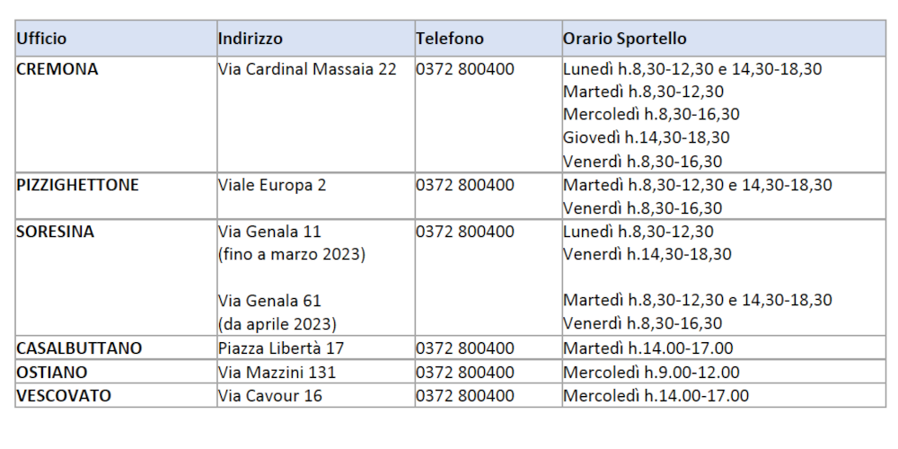 SPORTELLI TERRITORIALI dell’AMBITO SOCIALE CREMONESE