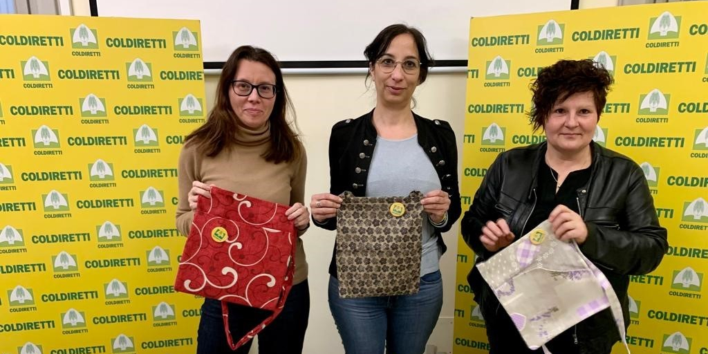 Sul tavolo della sede provinciale di Coldiretti Cremona c’è un arcobaleno di tessuti, di colori. Dentro ogni borsa c’è un biglietto, preparato da Bags For Life, che riporta il nome della signora che ha cucito il piccolo dono.