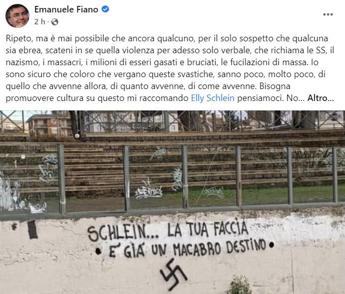 “Ripeto, ma è mai possibile che ancora qualcuno, per il solo sospetto che qualcuna sia ebrea, scateni in se quella violenza per adesso solo verbale, che richiama le SS, il nazismo, i massacri, i milioni di esseri gasati e bruciati, le fucilazioni di massa – il post di Emanuele Fiano su Facebook – Io sono sicuro che coloro che vergano queste svastiche, sanno poco, molto poco, di quello che avvenne allora, di quanto avvenne, di come avvenne. Bisogna promuovere cultura su questo mi raccomando Elly Schlein pensiamoci. Non lasciamo niente di intentato. Ogni rigurgito va curato, represso certo, ma deve anche essere oggetto di un nuovo investimento culturale ed educativo nel nostro paese, per trasmettere la lezione del male e trasformarla in bene. Solidarietà ad Elly Schlein. Se non ora quando?”.