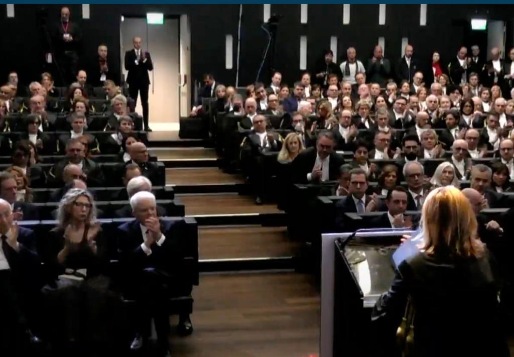 Dopo la relazione della presidente Masi hanno preso la parola Margherita Cassano, primo presidente della Corte Suprema di Cassazione; Fabio Pinelli, vice presidente del Consiglio Superiore della Magistratura; Francesco Paolo Sisto, vice ministro della Giustizia.