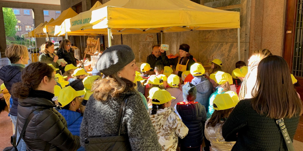 I bambini delle classi 1A e 1B della Scuola primaria Bissolati, con le insegnanti e le famiglie, sono stati accolti nella mattinata di martedì al Mercato di Campagna Amica. “Per noi ogni momento d’incontro è prezioso. E’ un’occasione per trasmettere ai bambini tutta l’attenzione, tutta la cura e professionalità, tutto l’impegno per la qualità e salubrità che ogni giorno poniamo nel nostro lavoro” hanno detto gli agricoltori.