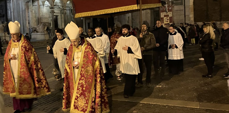 La celebrazione si è poi conclusa con la benedizione impartita dal vescovo con la reliquia della Sacra Spina.