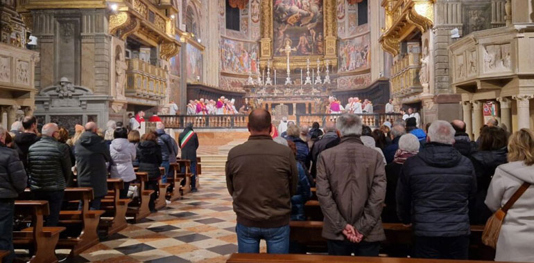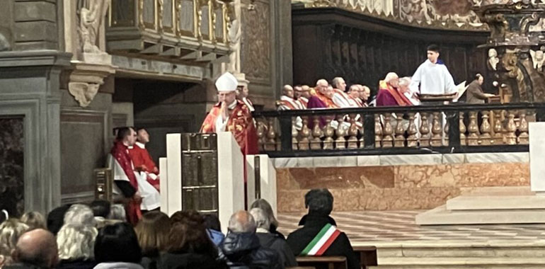 “Per cambiare il mondo”, ha detto il vescovo Trevisi nell’omelia, “dobbiamo contemplare il crocifisso e vedere noi stessi con gli occhi di Cristo. Allora potremo fare grandi scelte nella nostra vita, comprendere il mondo e chi siamo, qual è il nostro posto”. “C’è tanto dolore in questo mondo”, ha detto il neo vescovo, “tanta violenza e tanto male. Anche al tempo di Gesù c’erano persecuzioni e violenze inaudite. Ma dobbiamo comprendere quanto questo mondo sia prezioso. Ogni popolo e ogni cultura meritano il nostro rispetto. Come Gesù dall’alto della croce, è necessario guardare tutto dalla prospettiva del crocifisso. Ecco l’impegno che dobbiamo prefiggerci. Se ci diamo il tempo della contemplazione di Gesù, la vita cambia. Gesù ci insegna a prenderci cura di questo mondo e di questa umanità”.