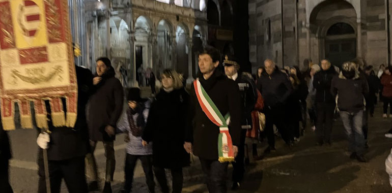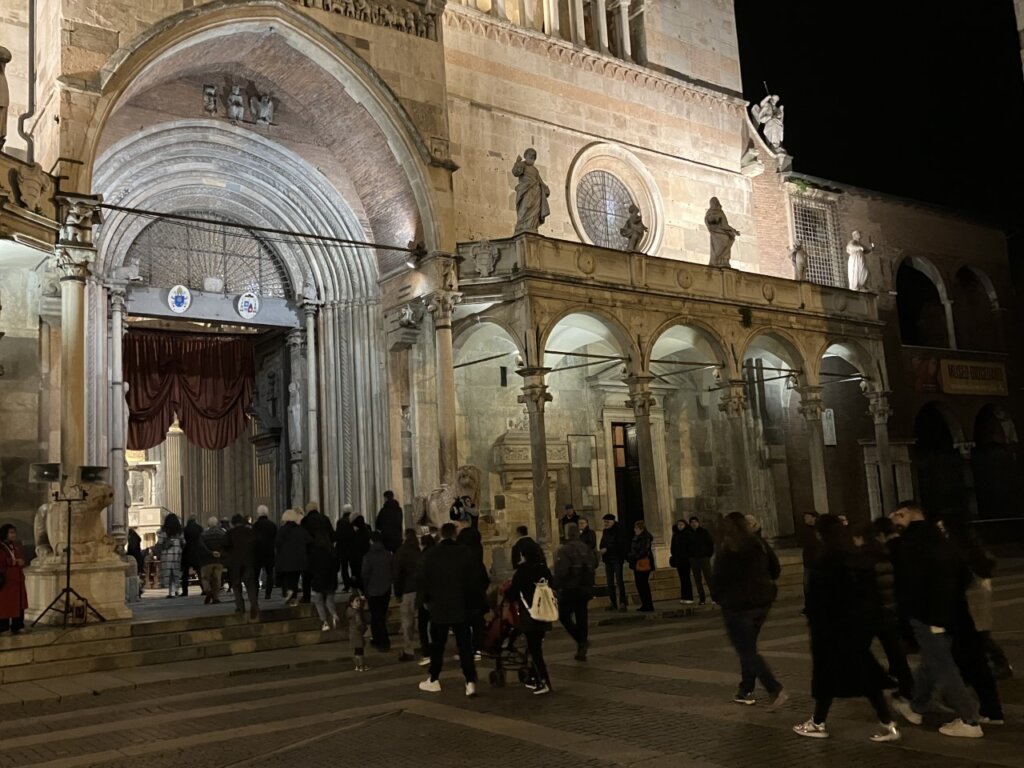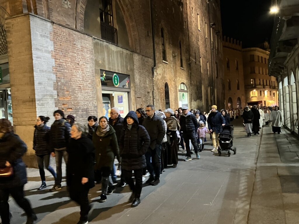 Una grande folla, ieri sera, si è unita alla tradizionale processione della Sacra Spina, momento importante in vista della Pasqua. Tanti i cremonesi che si sono messi in cammino dietro la Sacra Spina, portata dal neo vescovo di Trieste, monsignor Enrico Trevisi. Presenti il vescovo di Cremona Antonio Napolioni e il vescovo emerito Dante Lafranconi, il Perinsigne Capitolo della Cattedrale, il collegio dei parroci urbani, religiosi e religiose e le autorità cittadine precedute dal sindaco Gianluca Galimberti. Il lungo corteo, scortato dalle forze dell’ordine, ha percorso piazza del Comune, largo Boccaccino, via Mercatello, corso Mazzini, piazza Roma, corso Cavour, via Verdi, piazza Stradivari e via Baldesio per giungere di nuovo in Cattedrale dove si è svolto il rito del Venerdì Santo.