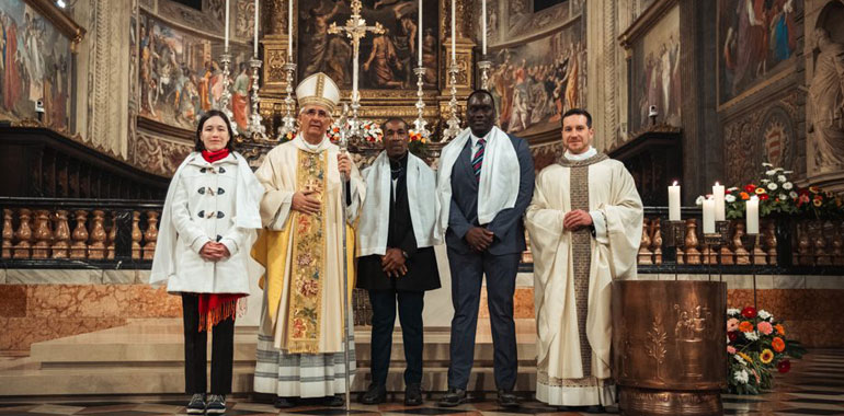 «Stasera – si è rivolto direttamente a loro il vescovo nell’ultima parte della sua omelia – Abbas, Jitka e Frank vivono la loro Galilea, l’abbraccio totale con la Pasqua di Gesù, nella quale vengono immersi per rinascere alla vita dei figli di Dio. Si chiama “vocazione”: è la vita cristiana chiamata a questa relazione faccia a faccia con Cristo che apre un cammino».