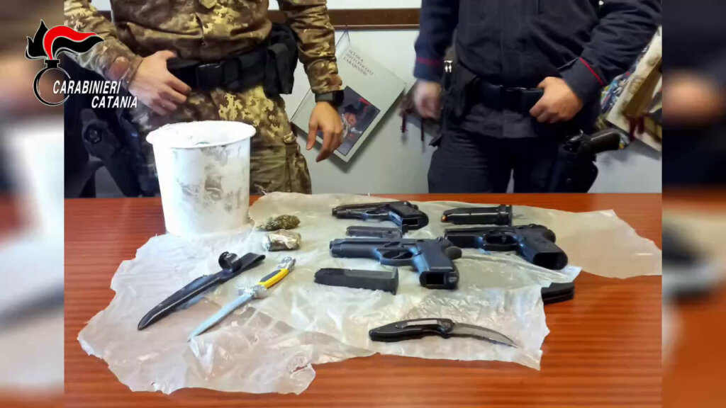 I carabinieri della Compagnia di Randazzo hanno arrestato un 25enne per detenzione illegale di arma comune da sparo, detenzione di arma clandestina, ricettazione e detenzione ai fini di spaccio di sostanze stupefacenti. Al termine di una serie di perquisizioni, in abitazioni e terreni a Linguaglossa e Piedimonte Etneo, i militari hanno sequestrato 2 pistole cariche e funzionanti, 2 involucri contenenti 43 grammi di hashish e 5 grammi di marijuana, nella disponibilità del giovane. Sequestrata anche una terza pistola. vbo