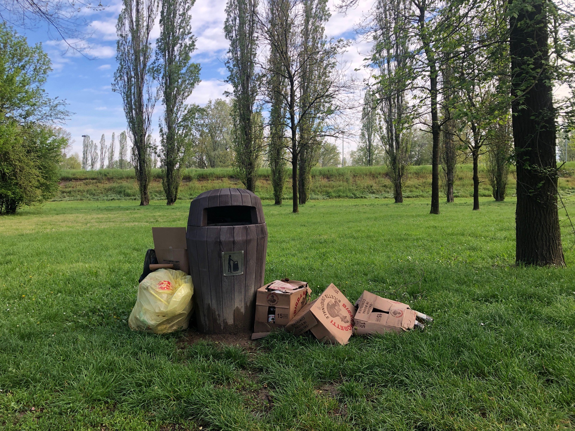 Pasqua e Pasquetta sono passate ormai da diversi giorni, ma gli avanzi dei picnic sono ancora evidenti in prossimità dei cestini per la raccolta della spazzatura al parco Lungo Po Europa di Cremona. Bottiglie di plastica, sacchetti di vario genere, cartoni, bottiglie di vetro vuote sono presenti ormai da giorni nel parco, regalando uno spettacolo desolante anche per i turisti che soggiornano nel vicino campeggio. Si tratta di fenomeni purtroppo non isolati, che denotano certamente l’inciviltà di chi non si preoccupa di lasciare pulito l’ambiente di tutti, ma anche una certa lentezza nel ripristinare il decoro e la pulizia dopo giornate festive in cui i parchi vengono frequentati da molte persone.