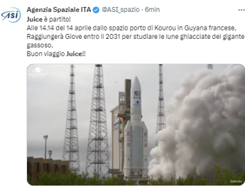 Dall’osservazione dell’atmosfera e della magnetosfera di Giove, a quella dell’interazione delle lune galileiane con il pianeta: per la missione Juice – e per raggiungere gli ambiziosi obiettivi attesi – sono al lavoro oltre 2.000 persone che in Europa, negli Stati Uniti, in Giappone ed in Israele. Juice è decollata oggi alle 14,14 ora italiana, dalla base spaziale di Kourou, nella Guiana francese, con un Ariane 5. La missione Juice è a guida Esa.