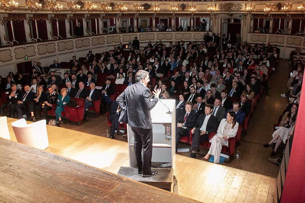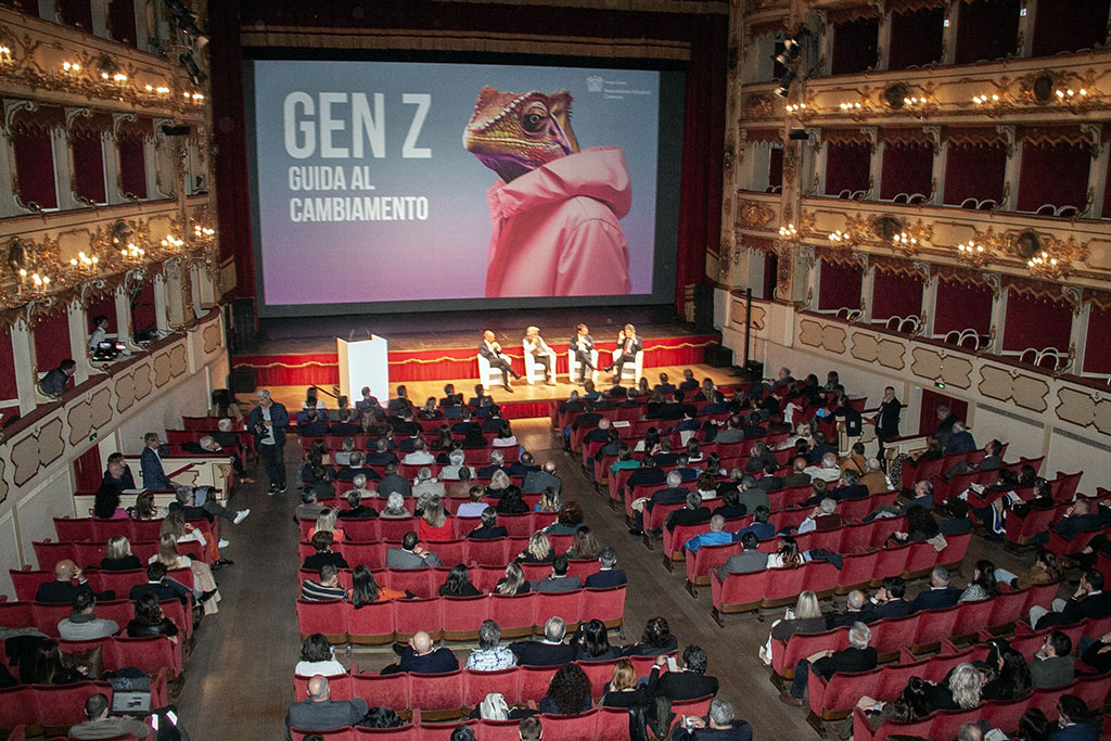 Il convegno al teatro Ponchielli ha visto la presenza del senatore di Italia Viva Matteo Renzi, Chiara Ferrari, past president, Francesco Buzzella, presidente Confindustria Lombardia, Beniamino Pagliaro, autore del libro ‘Boomers contro Millennials ’e il docente di Diritto del lavoro all’università di Modena e Reggio Emilia Michele Tiraboschi.