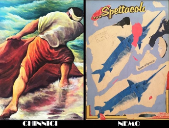 La mostra di Varese invita quindi a “immergersi nel linguaggio suggestivo della pittura cruda e accesa di Lorenzo Chinnici che sembra apparentemente scontrarsi con l’astrattismo dei dipinti di ‘Nemo’. Cruda e indignata l’emozione che traspare dalle opere di Chinnici; astratta e concettuale l’impressione percepita attraverso le opere di Nemo. E se Chinnici in un ‘opera mostra un pescatore intento alla ‘caccia’ del pesce spada nello Stretto in una dimensione eroica, mitica, titanica, con un racconto che si sublima con il sogno ed esalta i valori della tradizione, incorporando millenni di storia in una raffigurazione che evidenzia l’importanza della ritualità; Nemo rappresenta la ‘caccia’ del pesce spada come un grande spettacolo mediatico e commerciale, concentrandosi proprio sulla comunicazione simbolica dell’evento, dove, allo stesso tempo, il successo o meno della pesca, può cambiare il senso della giornata poiché c’è una ‘spada di Damocle’ che pende sulla testa di tutti e fa la differenza tra la sopravvivenza e la morte per il pesce ma anche per i pescatori”.
