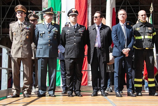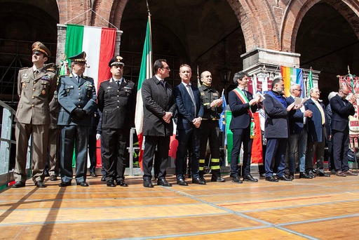 Sul palco oltre alle autorità civili e militari, il consigliere regionale Marcello Ventura. Tra i rappresentanti della minoranza di centrodestra presenti in piazza, i consiglieri comunali Carlo Malvezzi (FI), Simona Sommi (Lega) e il segretario cittadino di Fratelli d’Italia Luca Grignani.