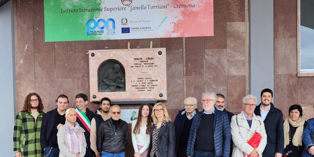 Questa mattina la lapide – recuperata dai magazzini comunali e installata su una parete dell’edificio del Torriani – è stata disvelata alla presenza del presidente dell’Anpi Giancarlo Corada, del presidente della Provincia Mirko Signoroni, del sindaco Gianluca Galimberti, degli assessori Luca Burgazzi e Rosita Viola e di diversi esponenti dell’antifascismo cremonese, tra cui l’ex assessore all’Urbanistica Michele De Crecchio.