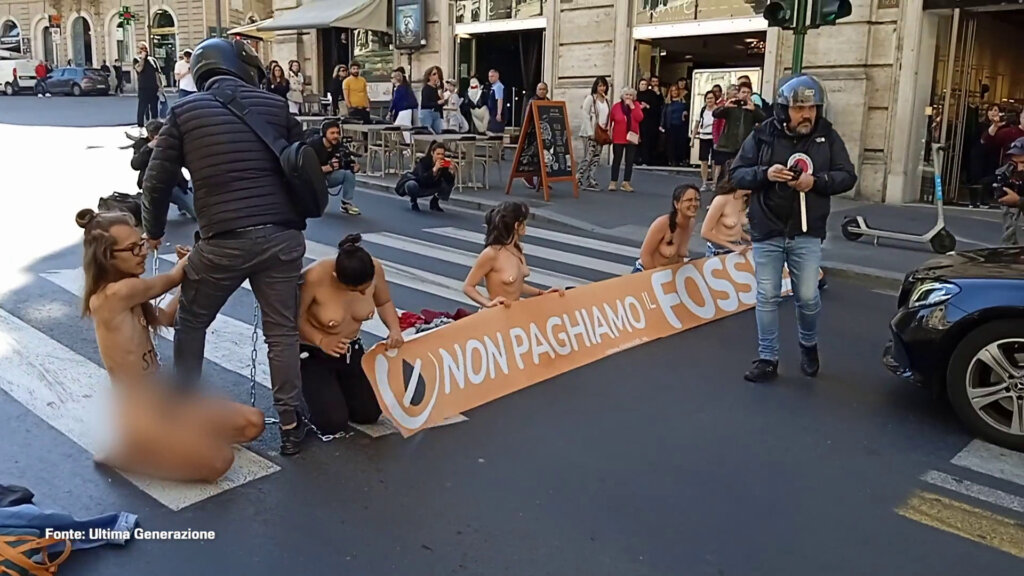 Roma, a seno nudo per l’ambiente. Protesta di Ultima Generazione