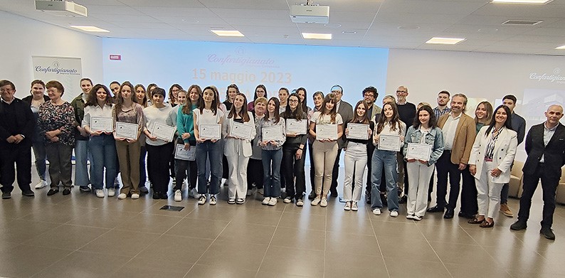 «Cosa vi spinge ad andare a scuola? Cosa vi motiva?», domande apparentemente semplici, ma risposte in realtà difficili, che il relatore ha supportato con alcuni esempi di ragazzi di varie nazioni che per andare a scuola percorrono decine di chilometri, contrapposte alla “nostra quotidianità”, in gran parte legata e assorbita dai social, le cui statistiche dicono che occupiamo più di sei ore con lo smartphone negli occhi. Dalla relazione sono emersi molti altri spunti decisamente interessanti, conclusi con un invito: «Nella vita provate a fare cose diverse dagli altri». Si è svolta quindi la premiazione degli studenti vincitori alla quale si sono affiancati al Presidente Rivoltini anche i vice Stefano Trabucchi e Daniele Gaimarri, che si sono alternati nella consegna degli attestati. Rivoltini ha anche chiuso la manifestazione: «Vi ringrazio per l’esempio che ci date – ha detto – e vi auguro di non adattarvi mai completamente alla tecnologia, ma di tenervi strette creatività, fantasia e desideri di una tradizione artigiana che sa motivare, sa desiderare, sa dimostrare che il futuro si costruisce con impegno e volontà». Qui l’elenco dei giovani premiati