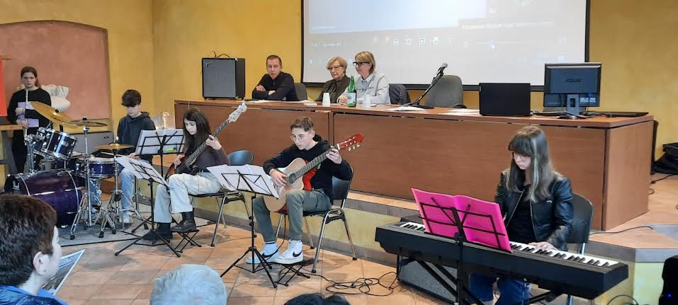 Durante i loro interventi le autorità hanno sottolineato l’impegno e la dedizione che gli alunni della scuola secondaria hanno messo per realizzare il “Ricettario della scuola ai fornelli”, dove sono contenute le ricette di famiglia, una specialità del proprio Paese o regione d’origine, di tutti gli alunni della scuola media grumellese. Il filo conduttore del progetto, coordinato dalla docente di Lettere Lia Castelvecchio insieme al referente di plesso Massimo Aldovini e al docente di Tecnologia Lorenzo Bocca, è appunto il cibo come identità culturale, ma anche come Obiettivo 2 di Agenda 2030 “Fame zero”.