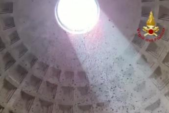 (Adnkronos) – Petali rossi giù dall’occhio della cupola del Pantheon. Il suggestivo lancio, per simboleggiare la discesa dello Spirito Santo nel giorno della Pentecoste, è stato effettuato dai vigili del fuoco, che sul loro profilo Twitter hanno postato anche un video che mostra decine di persone partecipare e filmare l’evento.