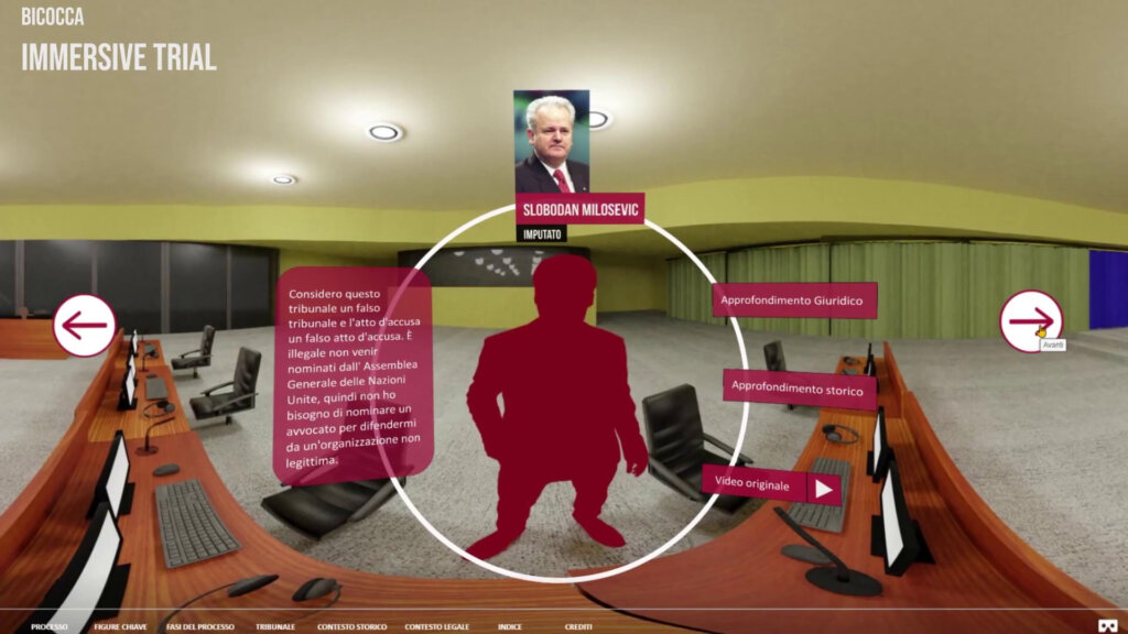 Interagire con il Tribunale penale internazionale per l’ex Jugoslavia a L’Aja, approfondire le questioni di diritto internazionale sollevate dalla costruzione del muro tra Israele e la West Bank, la Cisgiordania occupata. Sono alcune delle esperienze interattive offerte ai giuristi del terzo millennio da “Immersive Trial Bicocca”, la nuova piattaforma didattica digitale progettata dal Dipartimento di Giurisprudenza dell’Ateneo milanese.