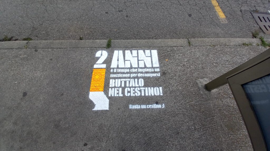 Come ha spiegato Giulio Ferrari, presidente del Quartiere 6 Zaist-Lucchini-Annona-Stadio, si sono dipinti a terra degli stencil nei luoghi di maggiore aggregazione e di vita del quartiere per ricordare l’impatto dei mozziconi di sigaretta se abbandonati nell’ambiente esortando ad un semplice gesto di civiltà ovvero spegnerli e gettarli nei cestini stradali.