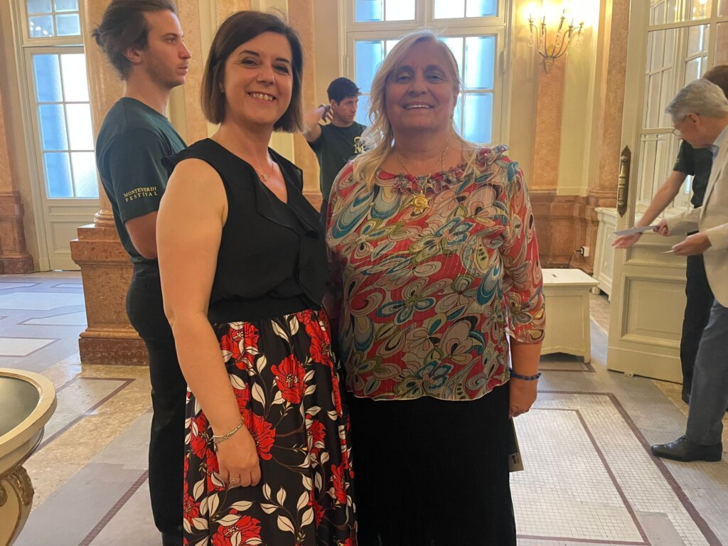 La serata mondana ha visto anche il segretario comunale Gabriella di Girolamo e Francesco Donati de Conti della Fondazione Bottesini di Crema. Ma anche Virginia Villa, direttore generale del Museo del Violino, Anne Colette Ricciardi, direttore del Conservatorio di Cremona, Roberto Scarcella Perino, compositore italo americano (in prima mondiale aveva debuttato al Ponchielli lo scorso anno con l’opera contemporanea “A sweet silence in Cremona”), tanti i nomi anche del consiglio comunale di Cremona, ma anche gli attori Dario Cantarelli e Alberto Branca, voci monteverdiane del visual mapping, tanti ospiti anche in campo giornalistico e spettatori che sono stati accolti dal sovrintendente del teatro Andrea Cigni.