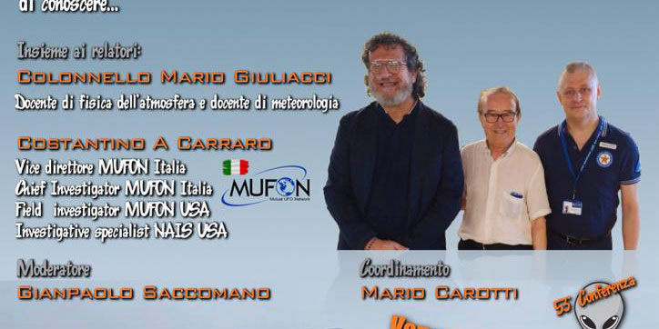 Venerdì 23 giugno il Gruppo Ufo Cremona organizza un incontro sul tema “Fenomeni più o meno identificabili”, con due relatori d’eccezione: il colonnello Mario Giuliacci, docente di fisica dell’atmosfera e di meteorologia, e di Costantino A Carraro, vice direttore di Mufon Italia, con la moderazione di Giampaolo Saccomanno.