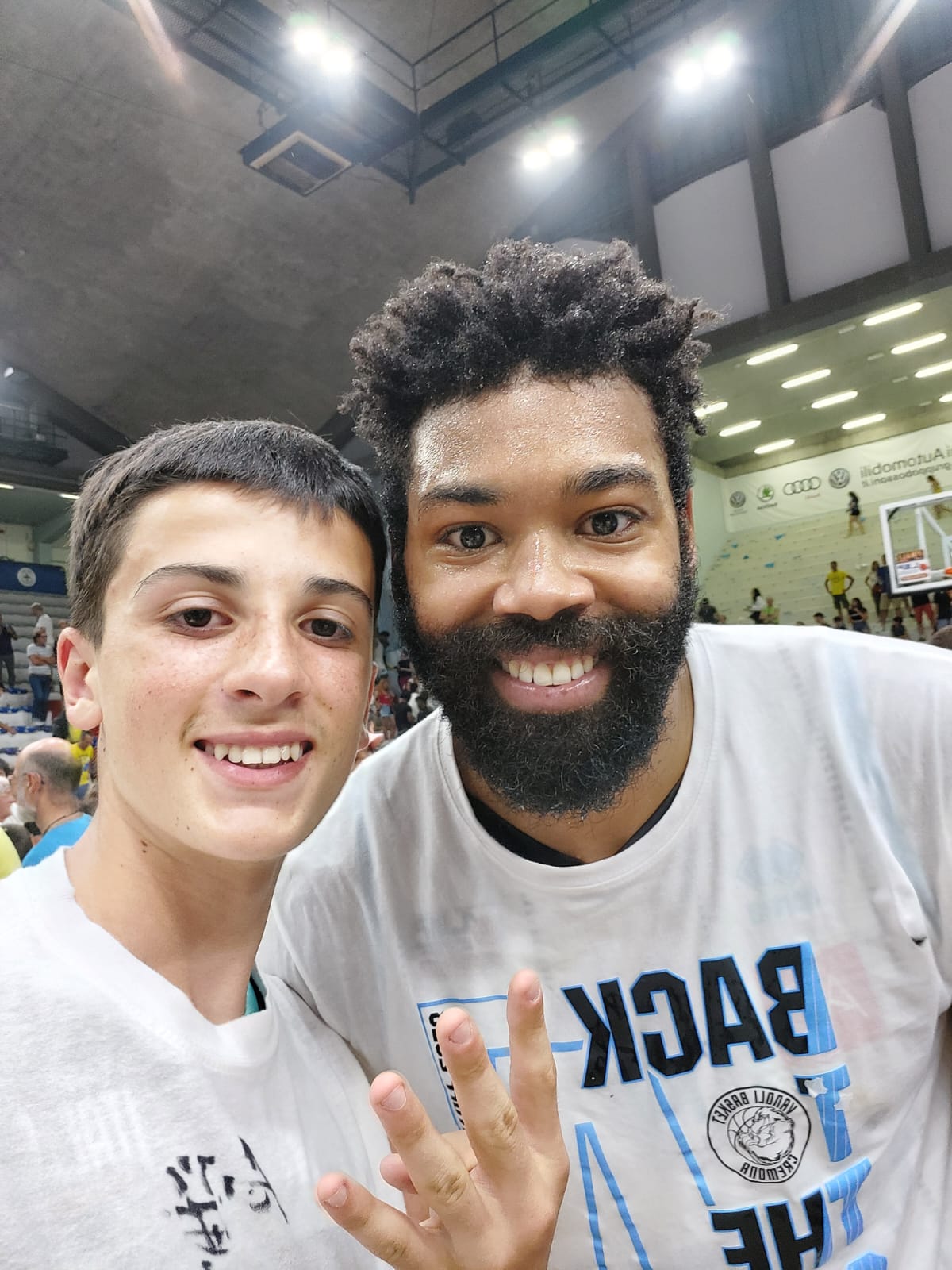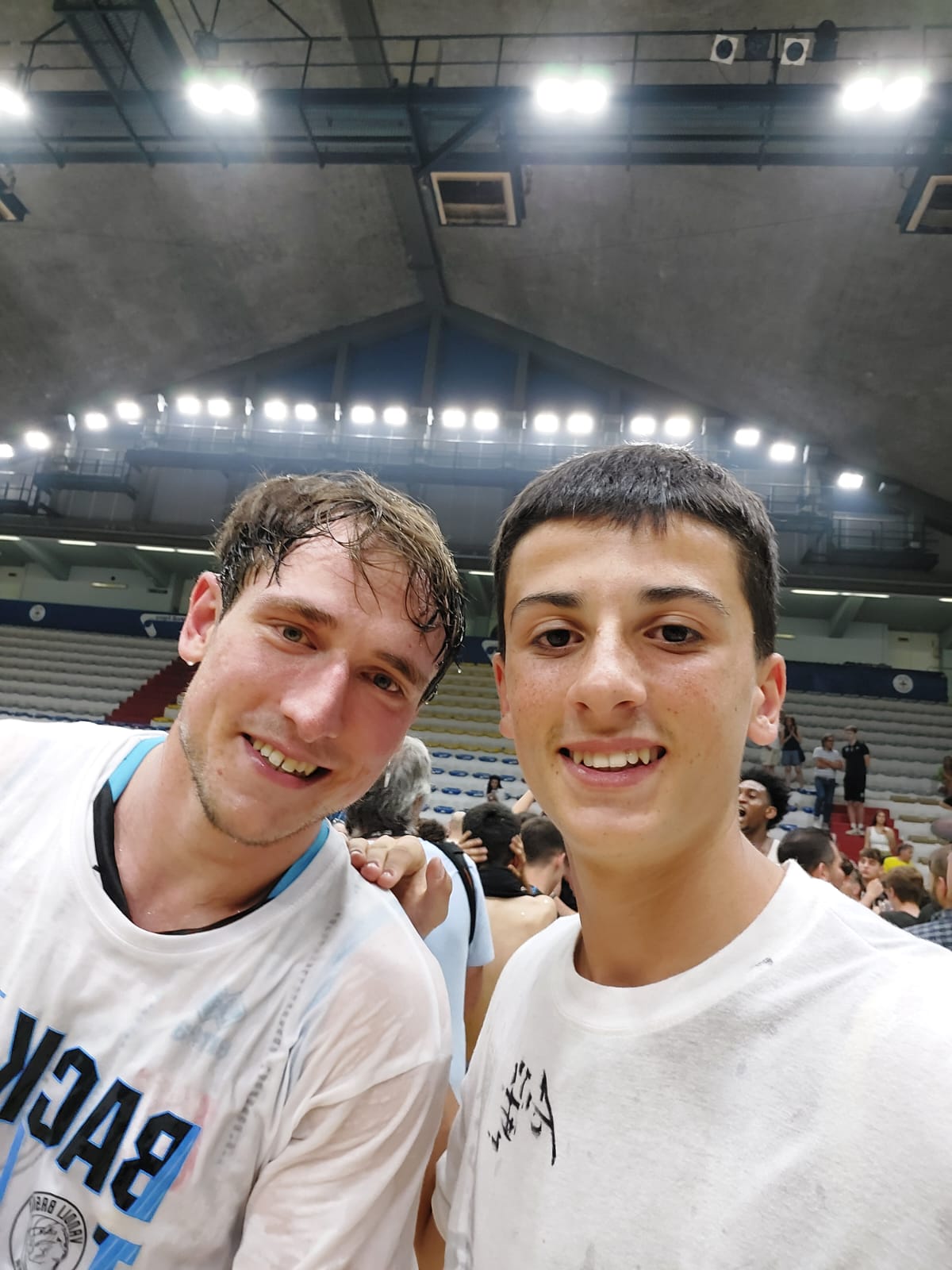 Ecco la testimonianza di Sergio: “Mi chiamo Sergio, gioco a basket in una squadra di provincia. Vi mando qualche mia foto. Sono felicissimo di aver avuto l’opportunità di assistere a questa magnifica partita e di festeggiare di persona con gli atleti. Forza Vanoli!”. Il giovane ci manda anche qualche scatto con i suoi beniamini: