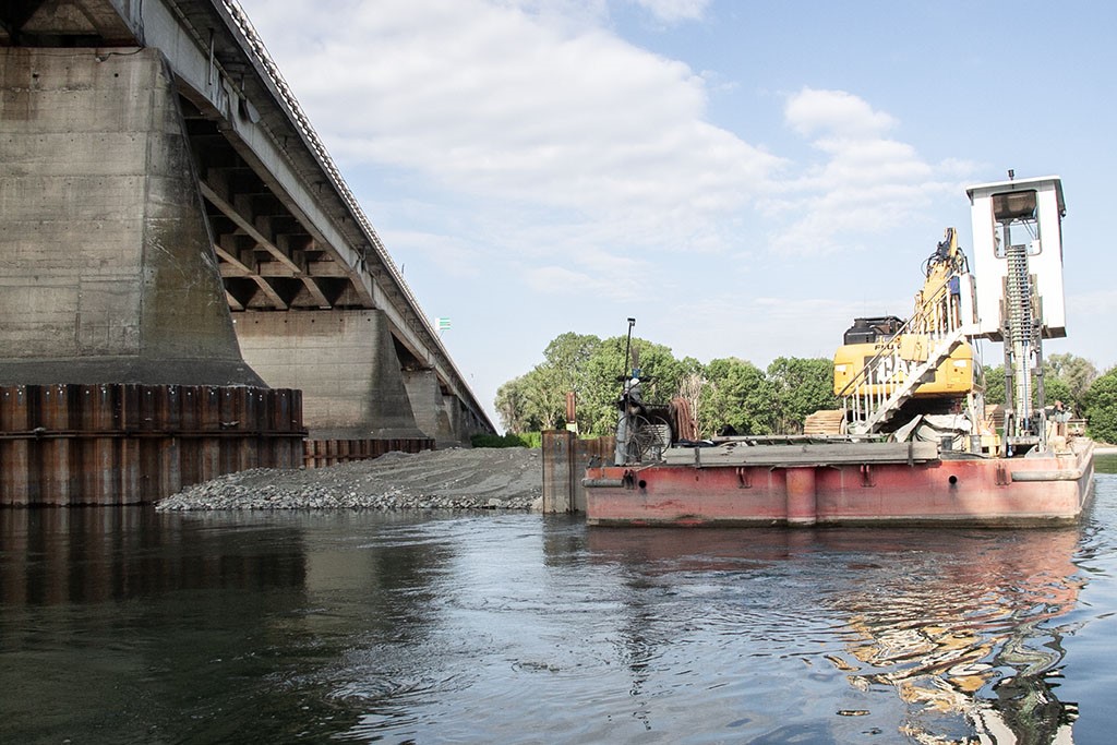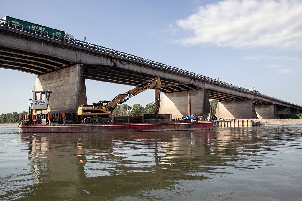 Da alcuni giorni le ditte ingaggiate da Autovia Padana – Gruppo Gavio stanno operando sui piloni prossimi alla sponda cremonese dopo che nei mesi scorsi erano state impegnate sul versante piacentino, per un consolidamento anche in chiave antisismica.
