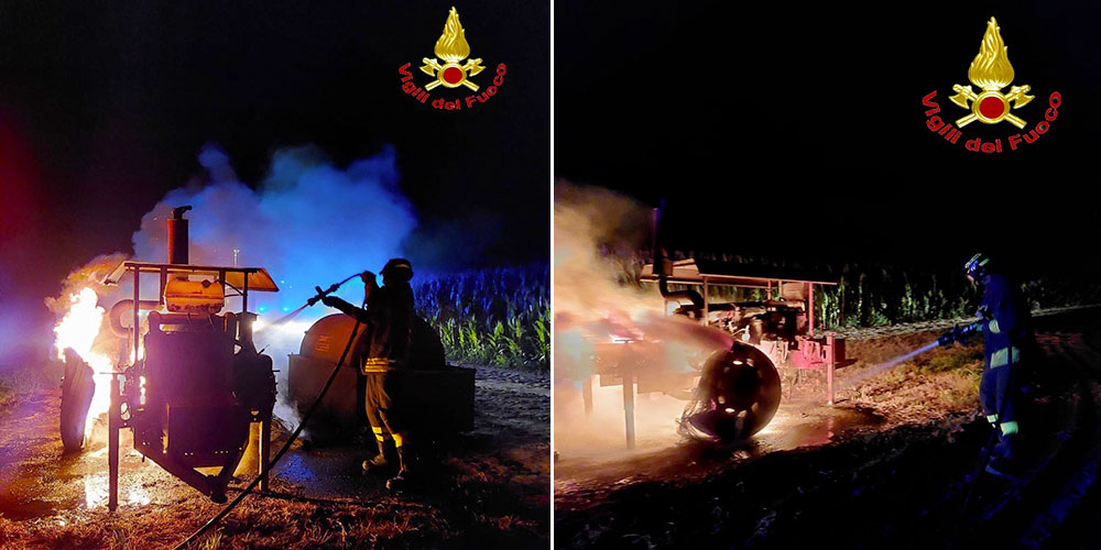 Rogo nella notte a Stagno Lombardo, in un campo, dove una motopompa da irrigazione ha improvvisamente preso fuoco. L’allarme è scattato intorno alle 22.40 all’azienda agricola La Pioppa. Immediato l’intervento dei Vigili del Fuoco, con una squadra che in poco tempo ha avuto ragione dell’incendio. Fortunatamente il mezzo era lontano da strutture abitative e le fiamme non sono riuscite a raggiungere il campo vicino.