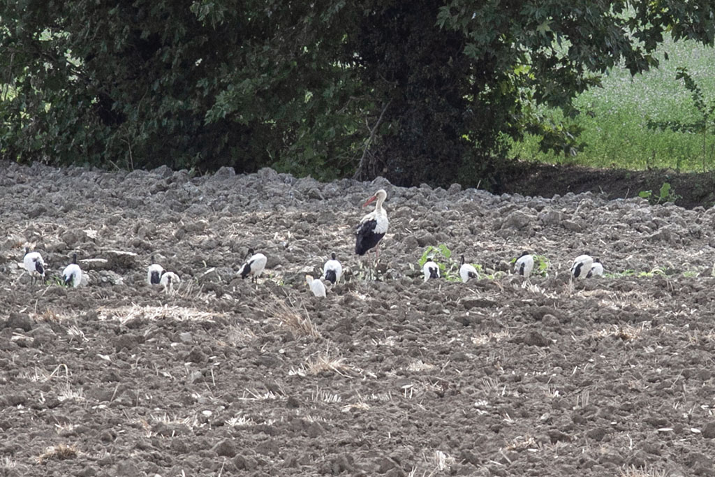 Ormai vederli stazionare nei campi dietro la chiesa di San Sigismondo non è più una novità, ma la nutrita presenza di cicogne e ibis sacri è sempre uno spettacolo.