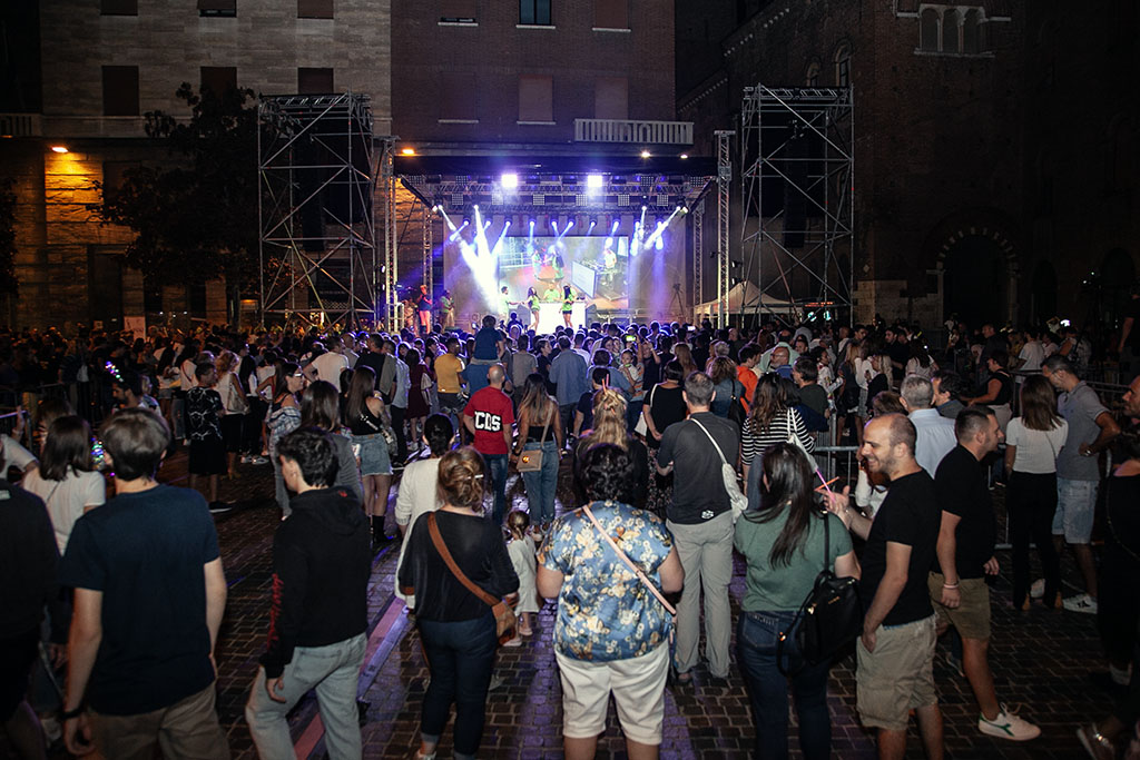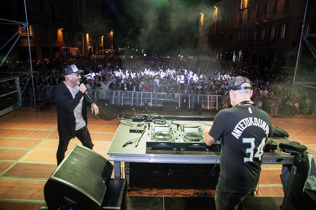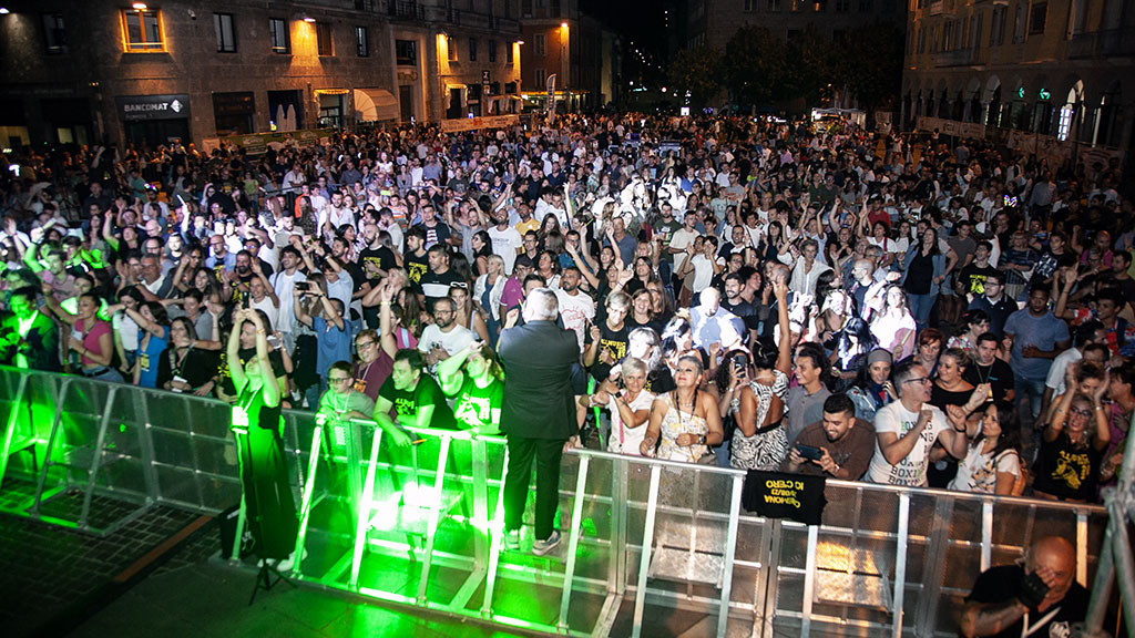 E’ iniziata puntuale la seconda edizione di All Music Party, in piazza Stradivari, una grande serata musicale in compagnia di 15 Dj da tutta Italia, che si alternano sul palco accompagnando anche le esibizioni dal vivo. Dopo il forfait (causa Covid del cantante) del gruppo di punta, gli Eiffel65, sono subentrati come special guest Marvin e Prezioso.