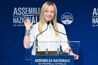(Adnkronos) – Piccola gag della presidente del Consiglio Giorgia Meloni in apertura dei lavori dell’assemblea nazionale di Fratelli d’Italia, oggi a Roma. Nel video che sta rimbalzando sui social, girato da fotografi e cameramen ammessi ‘al giro di tavolo’, la leader di Fdi accenna un saluto alzando la mano destra ma poi, scherzando, cambia subito lato alzando il braccio sinistro e dicendo con un sorriso ”forse è meglio questo”, con un chiaro riferimento al saluto romano. Subito è partito l’applauso dei delegati, già presenti in sala.