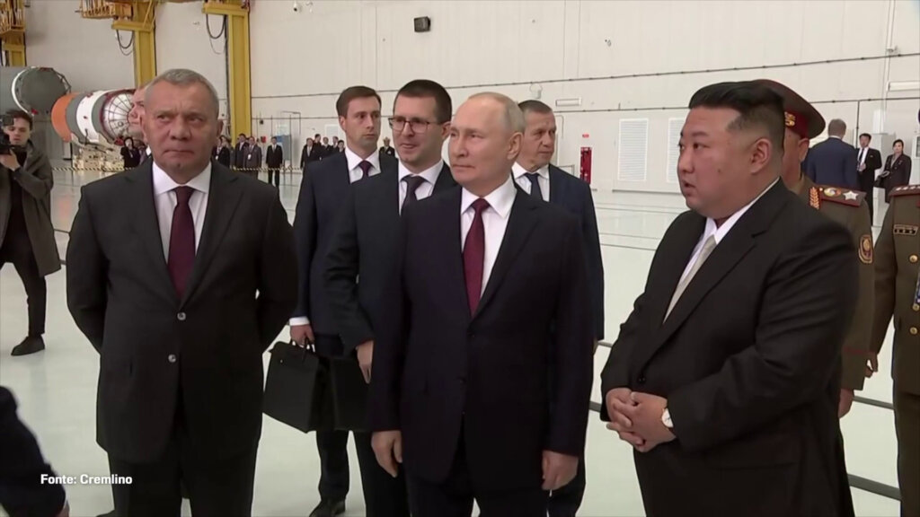VOSTOCHNY (RUSSIA) (ITALPRESS) – Il presidente russo Vladimir Putin ha incontrato il presidente della Corea del Nord, Kim Jong-un, a Vostochny. I due leader hanno ispezionato le strutture del nuovo cosmodromo, tra cui l’officina di assemblaggio del complesso di lancio del vettore spaziale Angara.