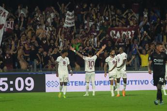 (Adnkronos) – Vittoria convincente del Torino che supera con un netto 3-0 la Salernitana all’Arechi. A sbloccare il match è Buongiorno, che sugli sviluppi di un corner approfitta di un rimpallo favorevole e mette in rete da due passi al 15′. Il raddoppio porta la firma di Radonjic, che con un destro all’angolino punisce Ochoa da fuori area al 41′. Al 5′ della ripresa la doppietta di Radonjic, che poi si vede annullare la tripletta dal Var. Il Toro vola a 7 punti in classifica in quinta piazza insieme e Napoli, Fiorentina e Frosinone, la Salernitana, ancora a secco di vittorie, resta a quota 2 insieme al Cagliari al 18° posto.