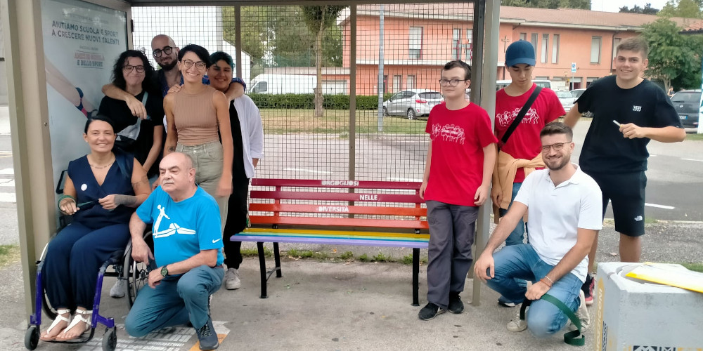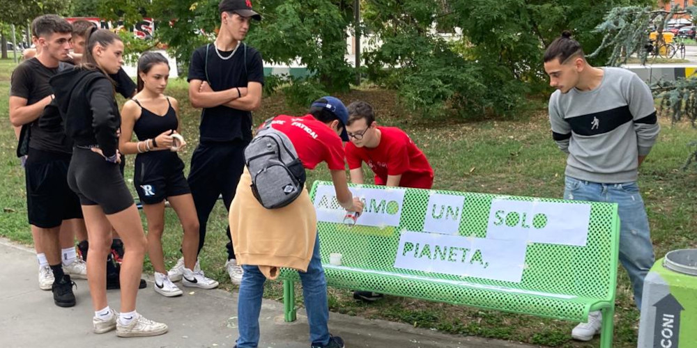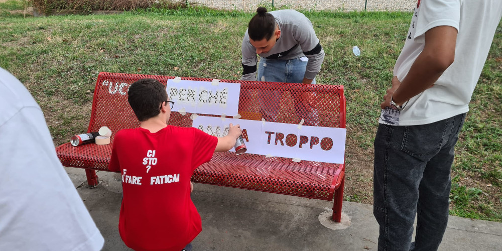 In conclusione del progetto Crevolution – che ha visto partecipare giovani ed adolescenti in attività sportive, espressive e culturali da maggio a settembre – al Quartiere Zaist le panchine presenti nella piazza del Parco del Volontariato sono state ridipinte per sensibilizzare i fruitori del parco su diversi temi.