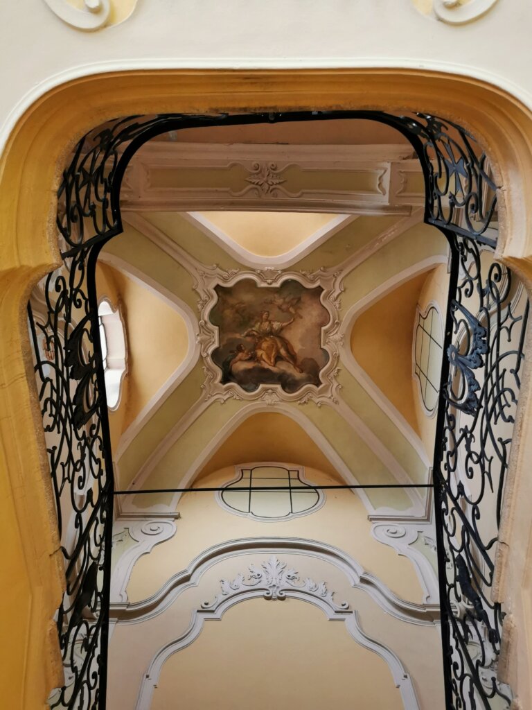 L’apertura durante le Giornate FAI permette di seguire l’evoluzione storica del palazzo e la sua stratificazione architettonica dal XV al XIX secolo. La visita parte dal loggiato d’ingresso e, attraverso lo scalone, continua al primo piano nel settecentesco appartamento nobiliare, dove i recenti restauri hanno riportato alla luce un brano pittorico assegnato a Giovan Angelo Borroni e restituito leggibilità alle decorazioni di Giuseppe Diotti e Giuseppe Manfredini. Per la prima volta dalla sua riscoperta avvenuta nell’autunno 2017 è anche visitabile un ambiente quattrocentesco affacciato sul cortile che ancora conserva le decorazioni originali con fregi parietali e un soffitto a tavolette policrome.