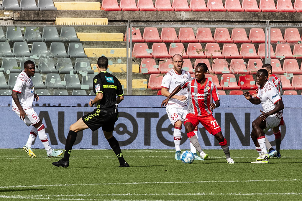 La Cremo ci prova da corner: all’8’ Vazquez inzucca ma non angola. Un minuto dopo è Rover a trovarsi di fronte a Sarr che arpiona. Stroppa inizia ad alzare i decibel, Bisoli prosegue il suo canto a squarciagola. Al 17’ Coda dimostra di essere fondamentale anche da suggeritore: girata per Zanimacchia che affila il destro ma non ferisce Poluzzi. Partita dai due volti, quella del riadattato esterno sinistro: parte male, poi ingrana ma non punge, finirà sostituito.