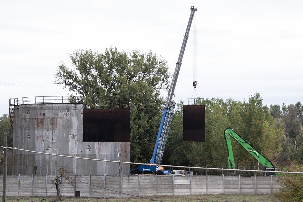 Lavori in corso nel deposito Tamoil, visibili dall’argine maestro di via Riglio. Da ieri, operai al lavoro per smantellare uno dei vecchi serbatoi all’estremità dell’area produttiva, verso il porto canale. Si tratta di operazioni programmate nell’ambito dell’ammodernamento delle strutture, in vista dell’ampliamento delle tipologie di combustibili trattati dall’azienda.