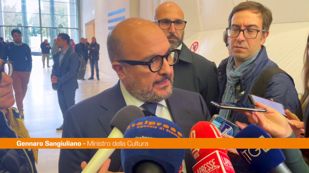 ministro della Cultura Gennaro Sangiuliano parlando della torre Garisenda di Bologna, a margine del primo incontro pubblico del