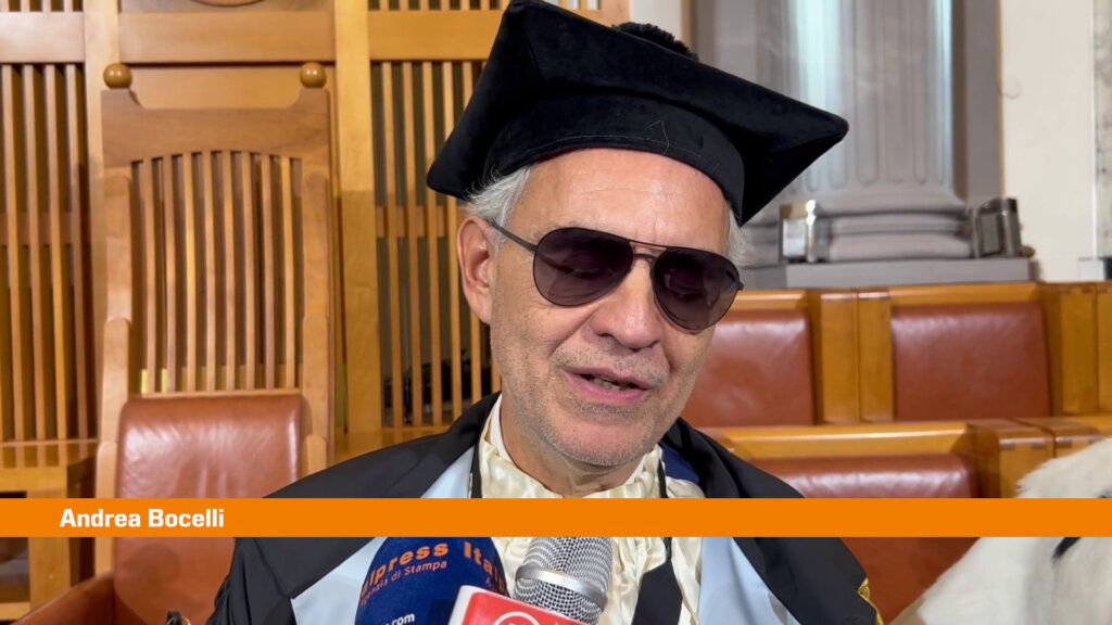 NAPOLI (ITALPRESS) – “Ricevere una laurea honoris causa qui è una cosa di cui capisco perfettamente l’onore, capisco un po’ meno la causa. Accetto con grande gioia e riconoscenza perché la vivo come una testimonianza d’affetto e un attestato di stima”. Così il tenore Andrea Bocelli parlando con i giornalisti a Napoli dopo avere ricevuto la Laurea magistrale Honoris Causa in Gestione delle Politiche e dei Servizi Sociali che gli è stata conferita dall’Università Federico II. Prima della proclamazione Bocelli ha tenuto una Lectio Magistralis. xc9/vbo/gtr